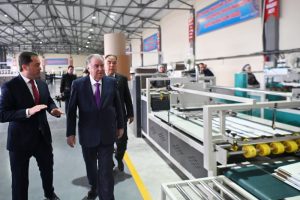 Президенти Ҷумҳурии Тоҷикистон Эмомалӣ Раҳмон дар ноҳияи Бобоҷон Ғафуров ба раванди истеҳсолот дар корхонаи қуттиҳои картонӣ оғоз бахшиданд