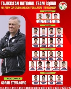 Ҳайати дастаи мунтахаби Тоҷикистон барои бозии интихобии Ҷоми Осиё-2027 ба муқобили дастаи Тимори Шарқӣ муайян гардид