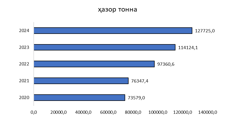 Дар панҷ соли охир (2020–2024) ҳаҷми боркашонии системаи ҳамлу нақли автомобилӣ тамоюли рушд гирифт, ки он дар диаграммаи зерин инъикос ёфтааст: