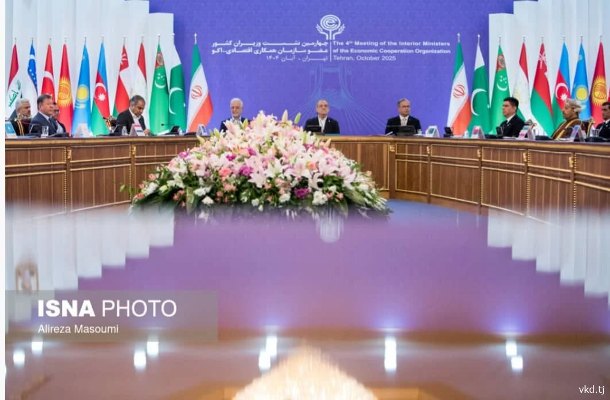 ДУШАНБЕ, 29.10.2025 /АМИТ «Ховар»/. 28 октябр дар шаҳри Теҳрони Ҷумҳурии Исломии Эрон ҷаласаи 4-уми вазирони корҳои дохилии кишварҳои узви Созмони ҳамкории иқтисодӣ (ЭКО) баргузор гардид, ки дар кори он Вазири корҳои дохилии Ҷумҳурии Тоҷикистон Рамазон Раҳимзода иштирок кард. Дар ин хусус ба АМИТ «Ховар» аз Вазорати корҳои дохилии Тоҷикистон хабар доданд.
