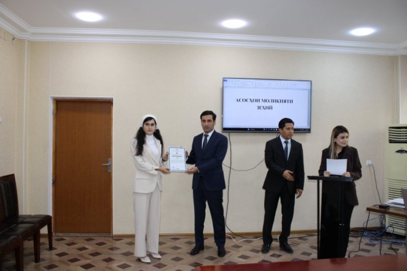 Ба даври омӯзишии «Асосҳои моликияти зеҳнӣ» дар баробари мутахассисони дохилӣ, инчунин мутахассисон аз Ҷумҳурии Қазоқистон бо мақсади мубодилаи таҷриба оид ба ҳуқуқвайронкуниҳо дар соҳаи моликияти зеҳнӣ ҷалб карда шуданд. Даври омӯзишӣ ҳама паҳлуҳои моликияти зеҳнӣ, аз ҷумла назария, эҷод, пешниҳод, санҷиш, ҳифзу ҳимоя ва ҳуқуқвайронкуниро фаро гирифт.