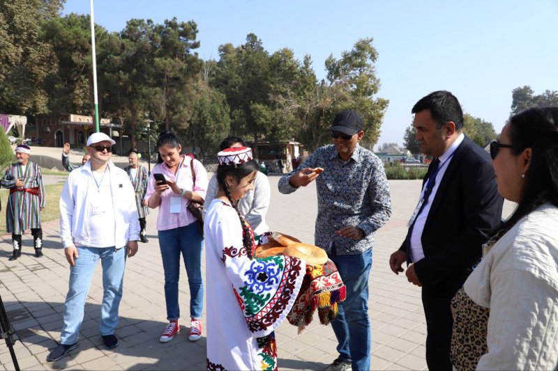 Меҳмононро дар майдони Маҷмааи таърихию фарҳангии «Қалъаи Ҳисор» чун анъанаи неки мардуми тоҷик бо нону намак ва бо суруду мусиқӣ истиқбол гирифтанд. Меҳмононро роҳбарияти шаҳри Ҳисор хайрамақдам гуфт. Зимни тамошои Маҷмааи таърихию фарҳангии «Қалъаи Ҳисор» ба меҳмонон доир ба таърихи ин Маҷмааи таърихӣ маълумот дода шуд.