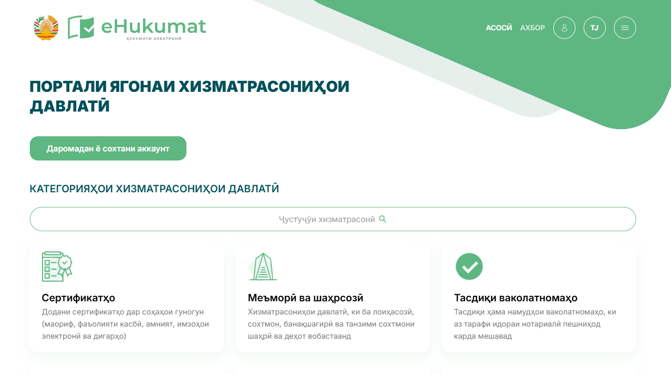 Портали хизматрасониҳои давлатӣ дар реҷаи пилотӣ ба фаъолият оғоз намуд