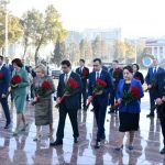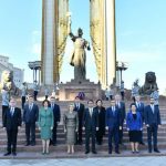 Ҳайати сарони кишварҳои аъзои Ассамблеяи байнипарламентии ИДМ дар пояи муҷассамаи Исмоили Сомонӣ гулчанбар гузоштанд