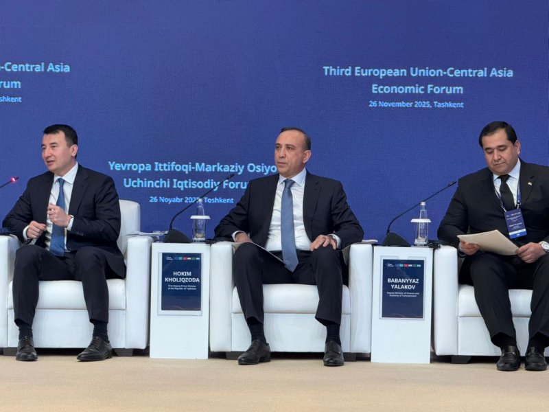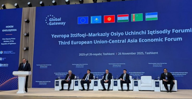 ДУШАНБЕ, 26.11.2025 /АМИТ «Ховар»/. Имрӯз ҳайати Ҷумҳурии Тоҷикистон таҳти раҳбарии муовини якуми Сарвазири Ҷумҳурии Тоҷикистон Ҳоким Холиқзода дар Форуми сеюми иқтисодии «Осиёи Марказӣ-Иттиҳоди Аврупо», ки дар шаҳри Тошканди Ҷумҳурии Узбекистон баргузор шуд, иштирок намуд. Дар ин хусус ба АМИТ «Ховар» аз Кумитаи давлатии сармоягузорӣ ва идораи амволи давлатии Ҷумҳурии Тоҷикистон хабар доданд.