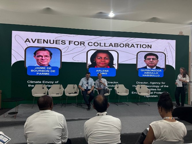 ДУШАНБЕ, 15.11.2025 /АМИТ «Ховар»/. 11 ноябр ҳайати Агентии обуҳавошиносии Кумитаи ҳифзи муҳити зисти назди Ҳукумати Ҷумҳурии Тоҷикистон дар ҳошияи 30-юмин Конфронси тарафҳои Конвенсияи қолабии Созмони Милали Муттаҳид оид ба тағйирёбии иқлим (СОР-30) дар шаҳри Белени Бразилия дар Намоиши натиҷаҳо ва ҳалли масъалаҳои «Миқёси огоҳии бармаҳал барои ҳама: идоракунӣ ва амали маҳаллӣ» иштирок ва суханронӣ намуд.