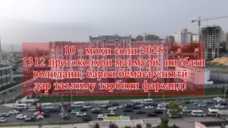 ДУШАНБЕ, 17.11.2025 /АМИТ «Ховар»/. Дар даҳ моҳи соли равон аз ҷониби кормандони милитсияи пойтахт нисбат ба 1312 волидайн тибқи талаботи моддаи 90 Кодекси ҳуқуқвайронкунии маъмурии Ҷумҳурии Тоҷикистон санадҳои маъмурӣ тартиб дода шуданд. Дар ин хусус ба АМИТ «Ховар» аз Раёсати Вазорати корҳои дохилӣ дар шаҳри Душанбе хабар доданд.