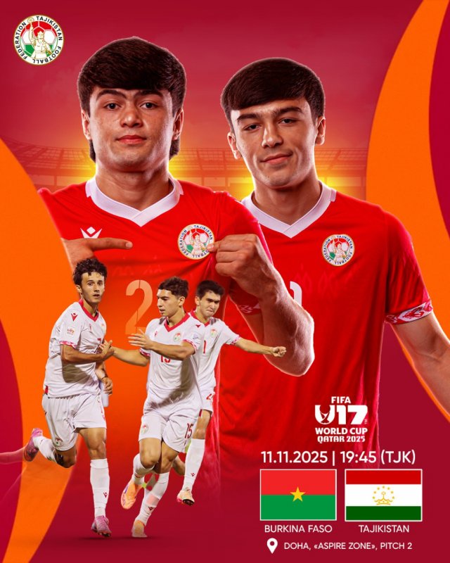 ҶОМИ ҶАҲОН-2025. Имрӯз дастаи мунтахаби наврасони Тоҷикистон (U-17) бо дастаи Буркина-Фасо бозӣ мекунад