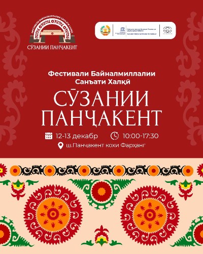 ДУШАНБЕ, 11.12.2025 /АМИТ «Ховар»/. 12-13 декабр дар шаҳри Панҷакент Фестивали байналмилалии санъати халқии «Сӯзании Панҷакент» доир мегардад. Дар ин хусус АМИТ «Ховар» бо истинод ба Мақомоти иҷроияи ҳокимияти давлатии шаҳри Панҷакент хабар медиҳад.