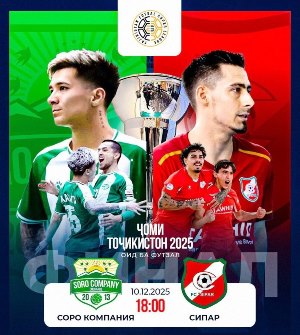 Бозии ниҳоии Ҷоми Тоҷикистон-2025 имрӯз, 10 декабр, соати 18:00 дар Маҷмааи варзишии Кумитаи андози шаҳри Душанбе баргузор мегардад.