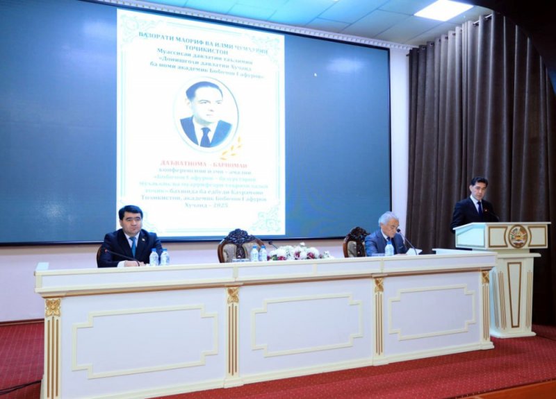 ДУШАНБЕ, 28.12.2025 /АМИТ «Ховар»/. Дар Донишгоҳи давлатии Хуҷанд ба номи академик Бобоҷон Ғафуров таҳти унвони «Бобоҷон Ғафуров – бузургтарин муҳаққиқ ва муаррифи таърихи халқи тоҷик» конференсияи илмӣ-амалӣ баргузор гардид, хабар медиҳад АМИТ «Ховар» бо истинод ба ин донишгоҳ.