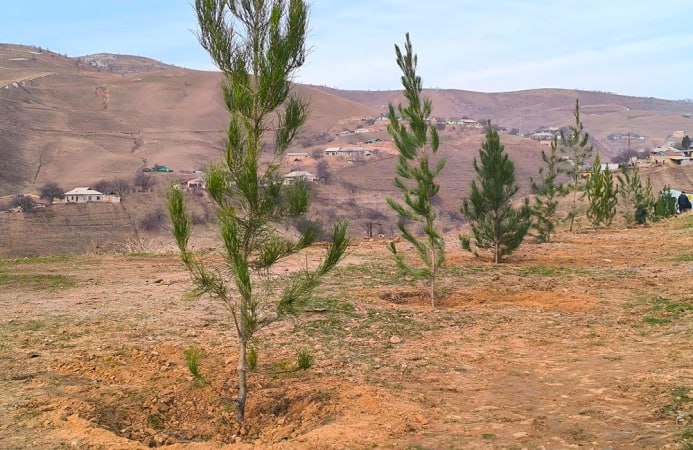ДАРАХТ БИНШОН! Дар талу теппаҳои канори шоҳроҳи Душанбе-Рӯдакӣ-Ваҳдат садҳо бех ниҳолҳои ҳамешасабз шинонида шуданд