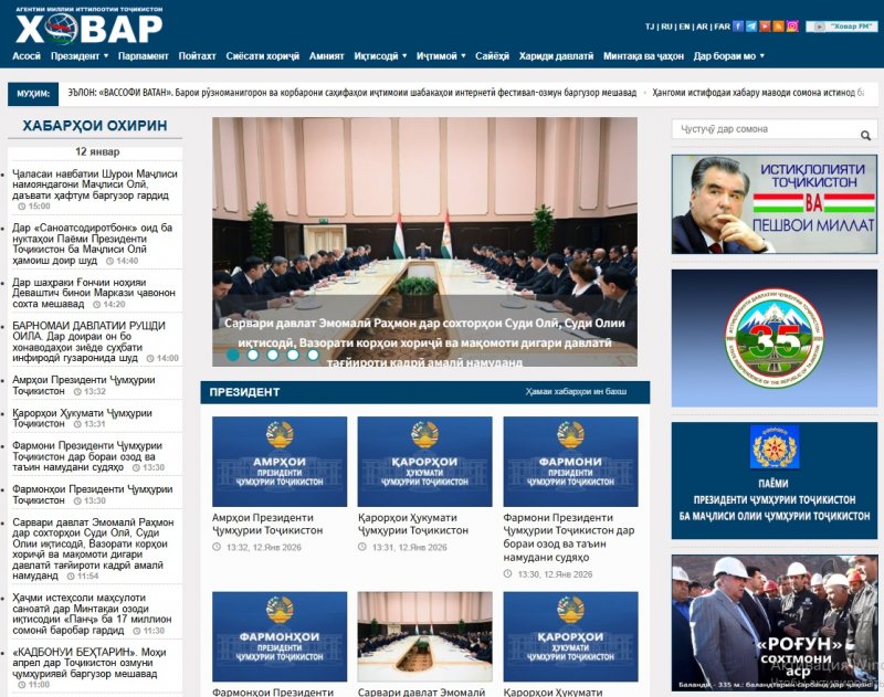 ДУШАНБЕ, 13.01.2026 /АМИТ «Ховар»/. Соли 2025 барои Агентии миллии иттилоотии Тоҷикистон «Ховар» давраи рушди устувор ва тақвияти мавқеи он дар фазои иттилоотии дохилӣ ва байналмилалӣ арзёбӣ мегардад. Нишондиҳандаҳои оморӣ далели равшани афзоиши таваҷҷуҳи корбарон ба манбаи расмии иттилоотии мамлакат буда, эътимоди рӯзафзуни ҷомеаро ба иттилооти муътамади давлатӣ инъикос менамоянд.