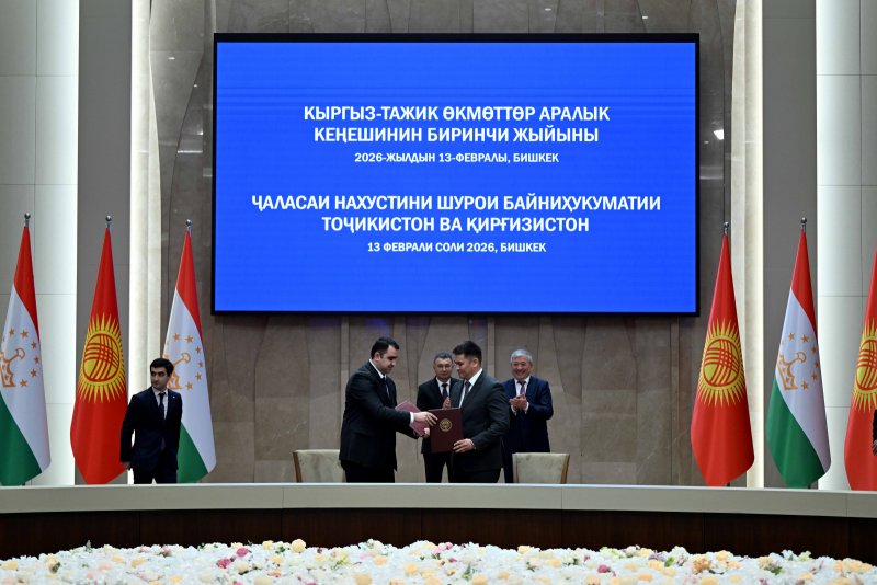 ДУШАНБЕ, 13.02.2026 /АМИТ «Ховар»/. Дар шаҳри Бишкеки Ҷумҳурии Қирғизистон бо иштироки Сарвазири Ҷумҳурии Тоҷикистон Қоҳир Расулзода ва Раиси Девони Вазирон — Роҳбари Дастгоҳи Президенти Ҷумҳурии Қирғизистон Адилбек Касималиев ҷаласаи якуми Шурои байниҳукуматии Ҷумҳурии Тоҷикистон ва Ҷумҳурии Қирғизистон баргузор гардид.