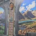 Деворҳои чойхона бо нақшу нигори зебои тоҷикӣ, унсурҳои кандакории миллӣ ва мусаввараҳои манзараҳои кӯҳистони Тоҷикистон оро ёфта, муҳити гарму дилнишин ва фазои фарҳангӣ фароҳам овардаанд. Ин ороишот на танҳо ҷолиби диққат, балки муаррифи ҳунари волои меъморӣ ва зебоишиносии мардуми тоҷик мебошанд.