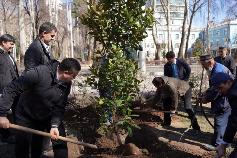 ДУШАНБЕ, 22.02.2026 /АМИТ «Ховар»/. 19 феврал дар назди бинои Академияи миллии илмҳои Тоҷикистон 16 дарахти навъи магнолия ва дигар дарахтони ҳамешасабз шинонида шуданд, хабар медиҳад АМИТ «Ховар» бо истинод ба академия.