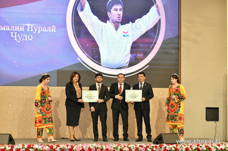 Ҷоизаи Президенти Ҷумҳурии Тоҷикистон дар ҳаҷми зиёда аз 2 миллион сомонӣ ба варзишгарони муваффақ тақдим гардид