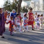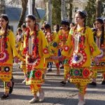Иштирокчиён бо либосҳои миллӣ, аз ҷумла атласу адрас ва дигар намунаҳои ҳунари волои мардумӣ, дар фазои идона ва руҳияи баланди ватандӯстӣ роҳпаймоӣ намуданд.