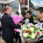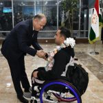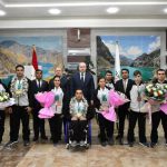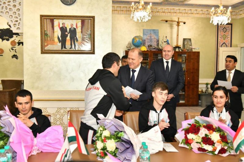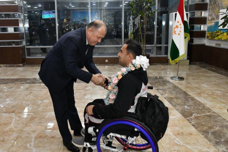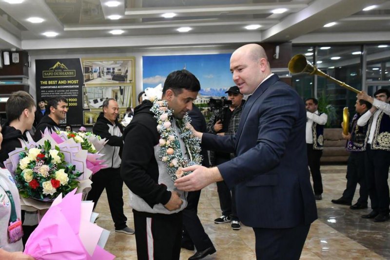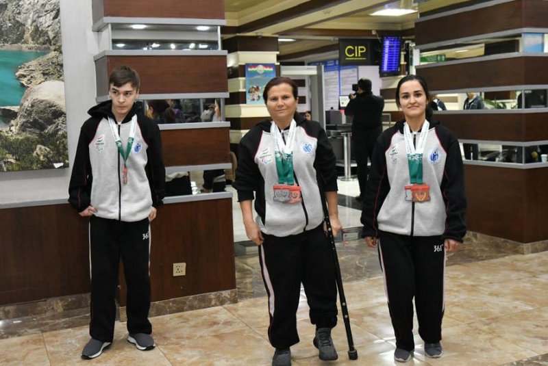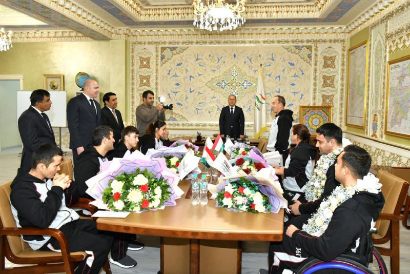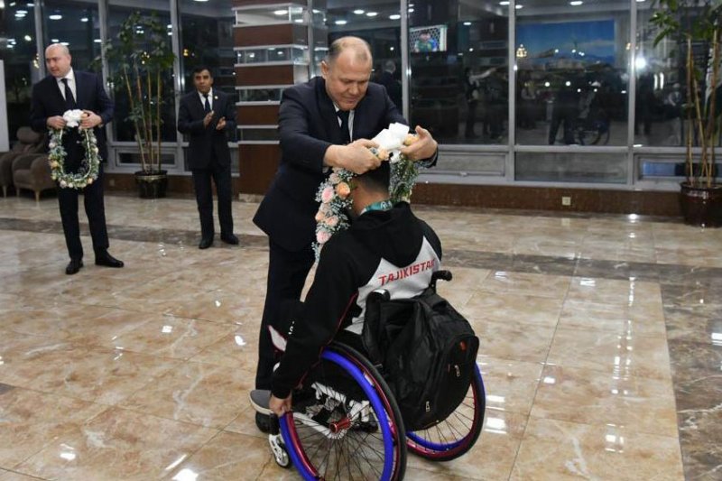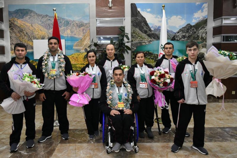 Варзишгарон ва мураббиёни онҳоро дар Фурудгоҳи байналмилалии Душанбе роҳбарияти Кумитаи кор бо ҷавонон ва варзиш, Кумитаи миллии олимпии Тоҷикистон, Кумитаи миллии паралимпии Тоҷикистон ва масъулони соҳаи варзиш дар сатҳи баланд ва бо шаҳомоти хосса истиқбол гирифтанд.