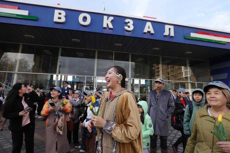 Меҳмононро дар истгоҳи роҳи оҳани пойтахт роҳбарияти Кумитаи рушди сайёҳии назди Ҳукумати Ҷумҳурии Тоҷикистон, КВД «Роҳҳои оҳани Тоҷикистон» ва намояндагони ширкати сайёҳии «Сомон Трэвел» истиқбол гирифтанд.
