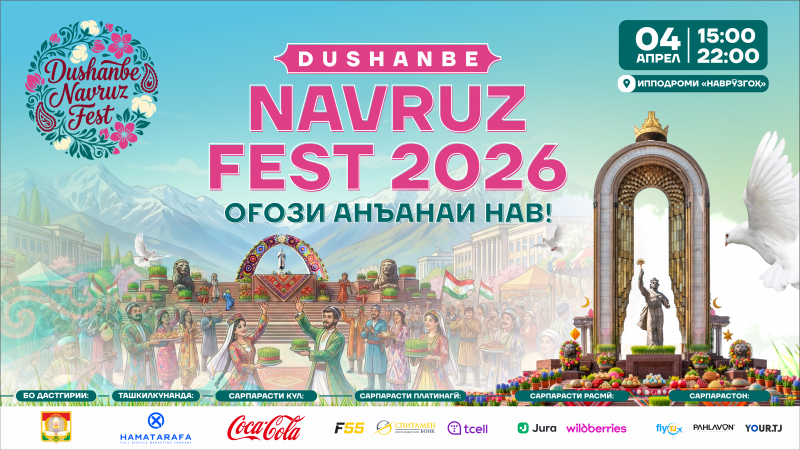 ДУШАНБЕ, 13.03.2026 /АМИТ «Ховар»/. 4 апрели соли 2026 дар асоси қарори дахлдори Раиси шаҳри Душанбе дар Муассисаи давлатии «Наврӯзгоҳ»-и шаҳри Душанбе чорабинии фарҳангӣ — фароғатии «Dushanbe Navruz Fest» баргузор мешавад. Дар ин хусус ба АМИТ «Ховар» аз шуъбаи рушди сайёҳии Мақомоти иҷроияи ҳокимияти давлатии шаҳри Душанбе хабар доданд.