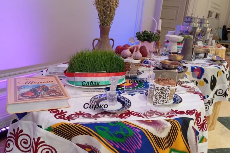 Дар яке аз гӯшаҳои толор дастархони идонаи миллӣ бо рамзҳои наврӯзӣ — ҳафт сину ҳафт шин, нону кулчаҳои тоҷикӣ, мавизу донагӣ, намунаҳои маҳсулоти брендҳои ватанӣ, аз қабили ширкатҳои қаннодии «Ширин» ва «Амирӣ», нӯшокиҳои ташнагишикани «Сиёма», «Оби Зулол» ороста ва пешкаши меҳмонон гардид.