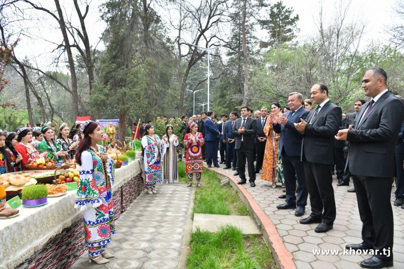 Аз ҷониби ҳунармандони шинохтаи мамлакат ва донишҷӯёну омӯзгорони муассисаҳои таҳсилоти ибтидоӣ ва миёнаи касбӣ барномаи театрии фарҳангӣ, ки иборат аз шеъру тарона, рақсу бозиҳои варзишӣ ва сурудҳои тараннумгари Наврӯз ва Ватан буд, пешниҳоди ҳозирин гардонида шуд.