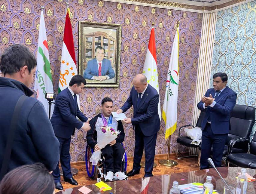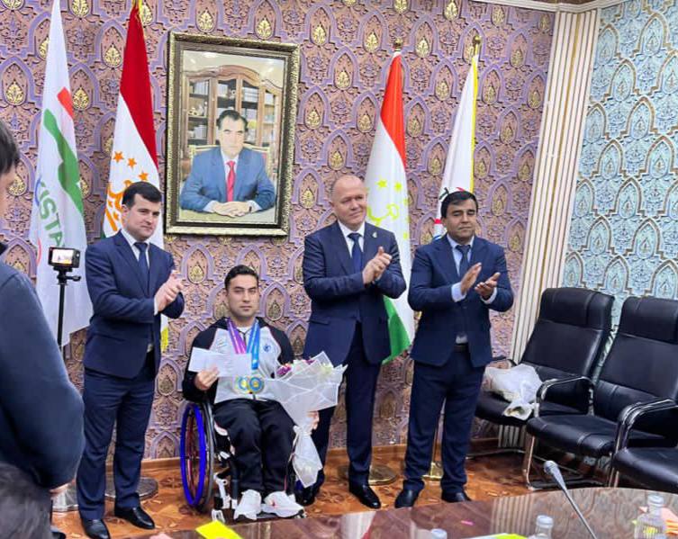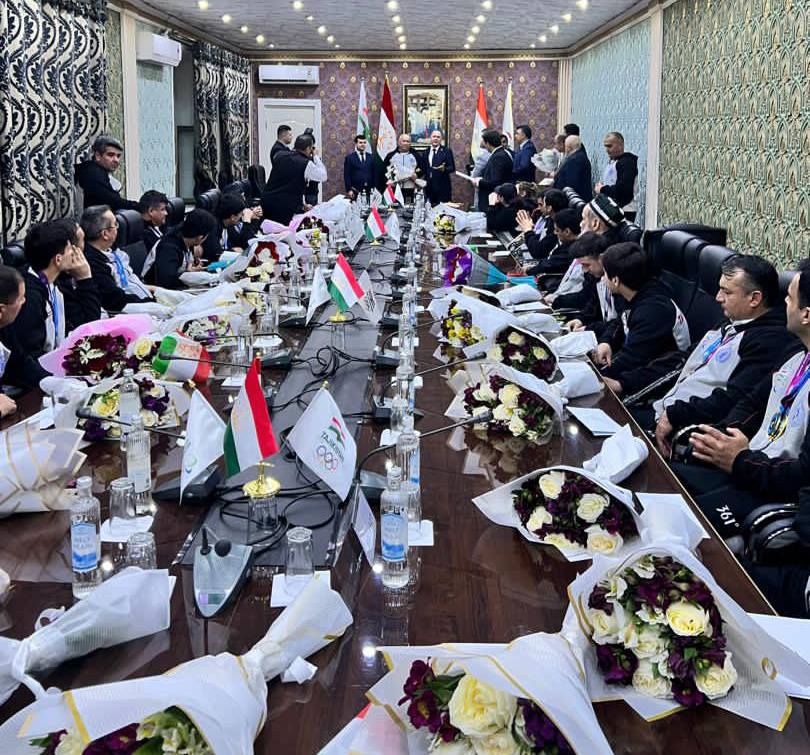 Дар маросими истиқбол муовини Раиси Кумитаи кор бо ҷавонон ва варзиши назди Ҳукумати Ҷумҳурии Тоҷикистон Сураҷ Чоршанбезода Президенти Кумитаи миллии паралимпии Тоҷикистон Маҳмуд Амонзода, Котиби генералии Кумитаи миллии олимпии Тоҷикистон Маҳмадшо Абдуллозода ва дигар шахсони масъул иштирок намуда, варзишгаронро гарму самимӣ пешвоз гирифтанд.