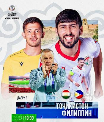 دوشنبه، ۳۰.۰۳.۲۰۲۶. /”خاور”/. فردا، ۳۱ مارس، ششمین دور مرحله مقدماتی جام ملتهای آسیا-۲۰۲۷ بین تیمهای ملی تاجیکستان و فیلیپین در ورزشگاه مرکزی حصار برگزار خواهد شد.