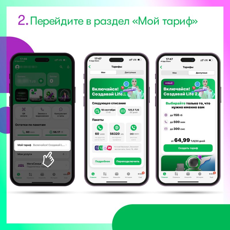 ДУШАНБЕ, 08.10.2025 /НИАТ «Ховар»/. Тариф «Включайся! Создавай Life 2.0» позволяет абоненту самостоятельно «собрать» пакет услуг связи. Как сделать это быстро из любой точки страны? К услугам клиентов компании «МегаФон Таджикистан» – мобильное приложение «МегаФон Life». Расскажем подробнее, как использовать его для управления тарифом.