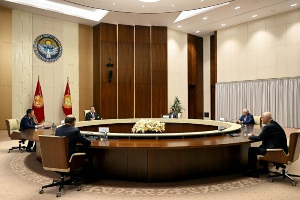 Перед началом встречи руководителей делегаций принял Президент Кыргызской Республики Садыр Жапаров.