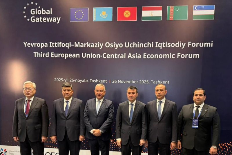 ДУШАНБЕ, 26.11.2025 /НИАТ «Ховар»/. Сегодня делегация Республики Таджикистан под руководством первого заместителя Премьер-министра страны Хокима Холикзода приняла участие в третьем экономическом форуме «Центральная Азия — Европейский союз», который состоялся в Ташкенте Республики Узбекистан. Об этом НИАТ «Ховар» сообщили в Государственном комитете по инвестициям и управлению государственным имуществом Республики Таджикистан.