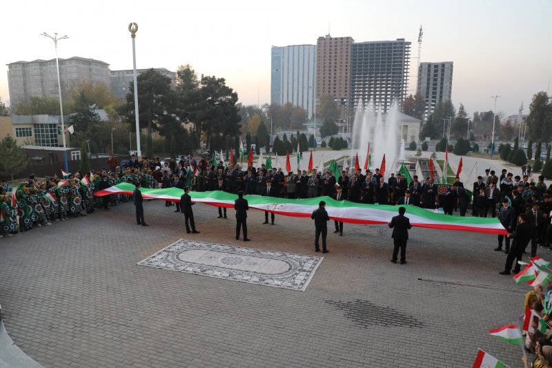 Отмечено, что Государственный флаг Республики Таджикистан, красный цвет которого символизирует независимость и свободу, белый — мир и спокойствие, а зеленый — процветание и изобилие жизни, а также корона с семью сияющими звездами, является олицетворением всемирной цивилизации, богатой культуры и славного пути патриотизма таджикского народа.