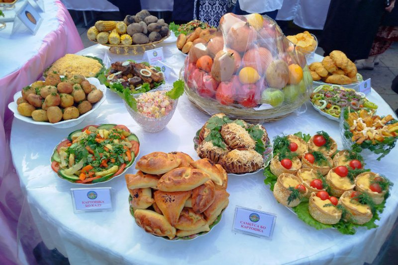 На выставке земледельцы страны представили на продажу сорта картофеля по относительно низкой цене. Также был представлен дастархан с блюдами из картофеля, подготовленный специалистами Министерства сельского хозяйства.