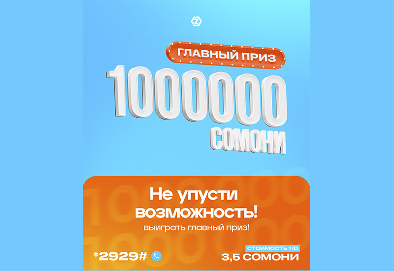 ДУШАНБЕ, 05.12.2025 /НИАТ «Ховар»/. ZET-MOBILE объявляет о запуске грандиозной акции «Забери миллион», где главный приз — сумма, способная изменить жизнь, — 1 000 000 (один миллион сомони)!