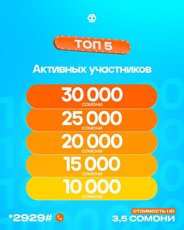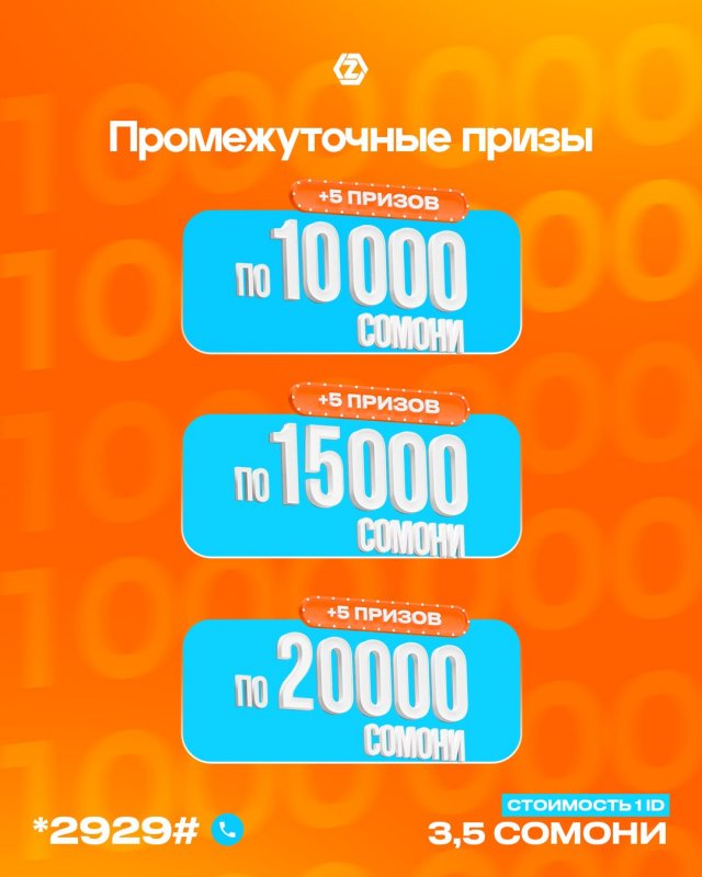 Для участия абонентам необходимо приобрести ID-код одним из удобных способов – звонок или SMS на короткий номер 2929 либо через мобильное приложение ZET-MOBILE. Стоимость одного ID – 3,5 сомони.