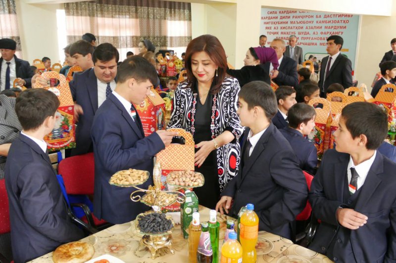 Подарки от Главы государства уважаемого Эмомали Рахмона переданы 101 ребёнку-сироте и оставшемуся без попечения родителей школы-интерната имени Рахмона Шукура и 121 ребёнку-сироте и оставшемуся без попечения родителей Государственного дошкольного интерната села Кангурт имени Вохида Бобоева Темурмаликского района. Подарки, состоящие из зимней одежды, обуви, брюк и костюмов, а также сладостей, были вручены воспитанникам этих учреждений представителями Правительства страны.