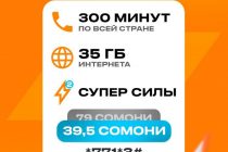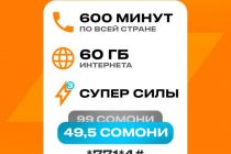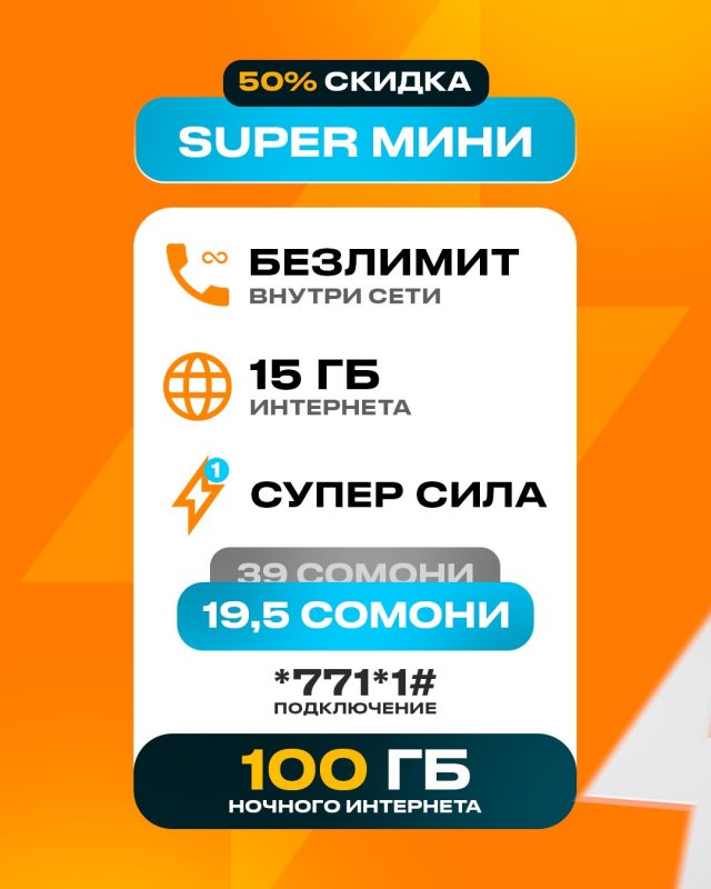 • Super Мини — 39 сомони ➝ по акции 19,50 сомони (команда подключения #7711#*);