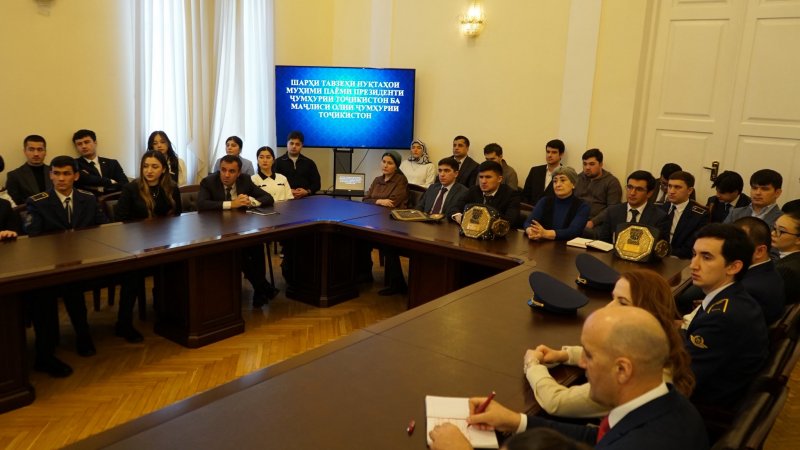 ДУШАНБЕ, 09.01.2026 /НИАТ «Ховар»/. 8 января Чрезвычайный и Полномочный Посол Республики Таджикистан в Российской Федерации Давлатшох Гулмахмадзода провел встречу со студентами из Республики Таджикистан, обучающимися в высших учебных заведениях России.