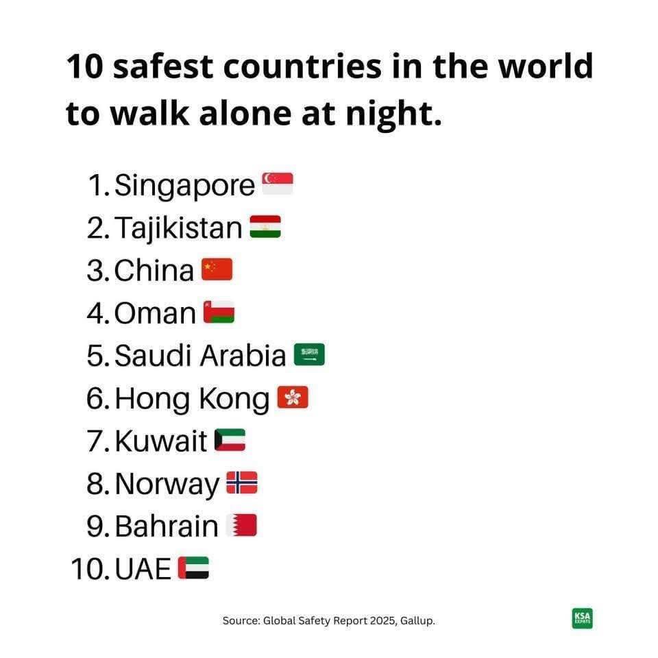 Кроме того, согласно данным Global Safety Report – 2025 американского Института общественного мнения Gallup, Таджикистан занял второе место среди самых безопасных стран мира. По результатам опроса, проведённого в 142-х странах, 95 % населения страны ощущают себя полностью в безопасности при ночных прогулках. В десятку самых безопасных стран мира вошли: Сингапур (98 %), Таджикистан (95 %), Китай (94 %), Оман (94 %), Саудовская Аравия (93 %), Кувейт (91 %), Норвегия (91 %), Бахрейн (90 %) и Объединённые Арабские Эмираты (90 %).Сегодня безопасность и стабильность общества, спокойная атмосфера городов и сел, а также традиционное таджикское гостеприимство признаются мировым сообществом, как высокие ценности.