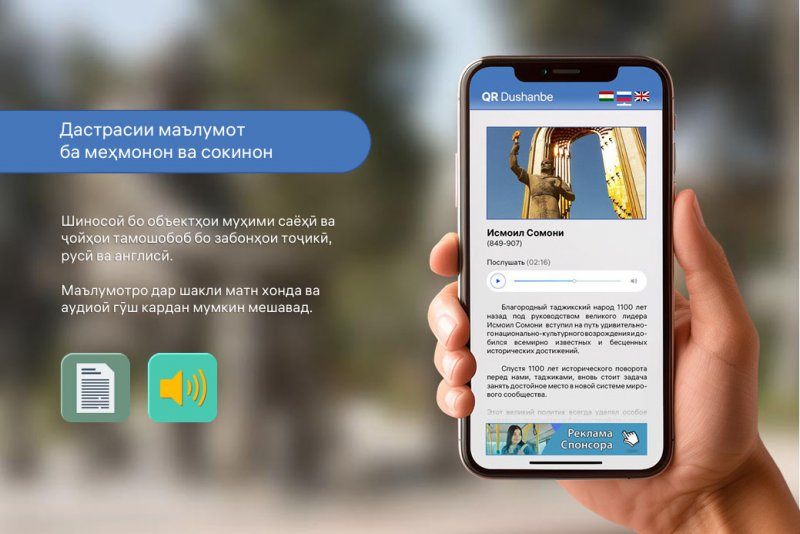 В рамках реализации проекта «QR-гид» туристы смогут с помощью мобильных телефонов получать подробную информацию об истории, культурной ценности объектов, предоставляемых услугах и маршрутах. Это не только повышает уровень сервиса, но и формирует имидж Душанбе как современного, цифрового и ориентированного на инновации города.