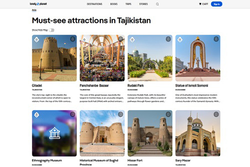 Так, совсем недавно издательство Lonely Planet, тираж которого охватывает около 6 миллионов экземпляров и которое пользуется высоким авторитетом в мире, через свои материалы привлекло внимание мировой аудитории к Таджикистану. Повторная публикация этого материала международными СМИ, включая CNN, свидетельствует о том, что туристический имидж страны укрепляется на международной арене.
