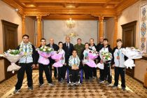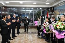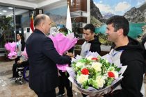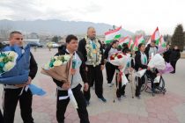 Спортсменов и их тренеров в Международном аэропорту Душанбе торжественно встретило руководство Комитета по делам молодёжи и спорта, Национального олимпийского комитета Таджикистана, Национального паралимпийского комитета Таджикистана.