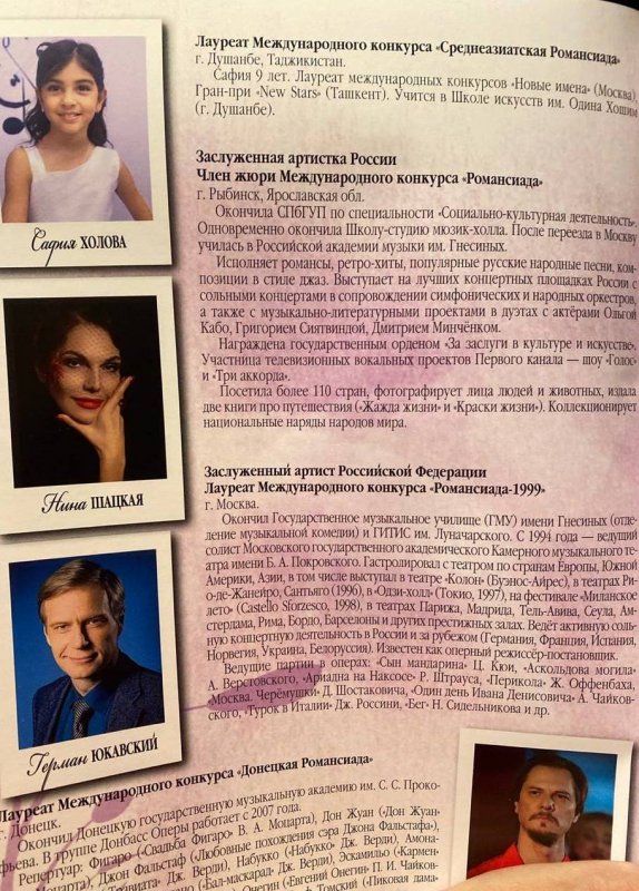 Уроженка Республики Таджикистан, лауреат первой премии «Среднеазиатской Романсиады» в Бишкеке Сафия Холова была приглашена для участия в концерте заслуженным деятелем культуры России, основателем конкурса «Романсиада» Галиной Преображенской.