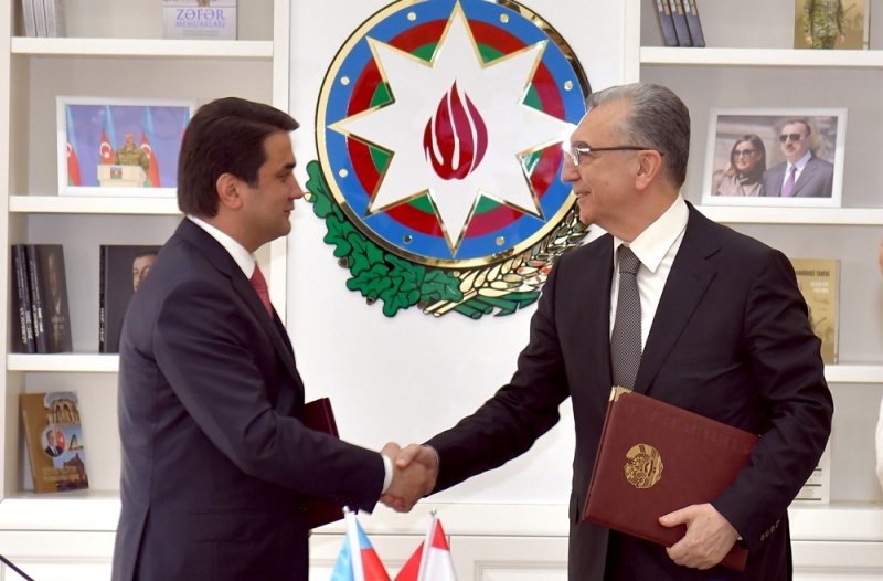 В завершение переговоров Рустами Эмомали и Эльдар Азизов подписали Соглашение об установлении побратимских отношений между городами Душанбе и Баку.