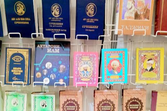 Также в уголке Таджикистана представлен отдельный раздел произведений Президента Республики Таджикистан, переведённых на таджикский, русский и английский языки.