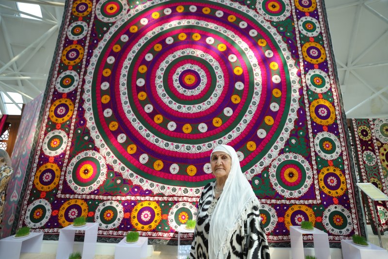 ДУШАНБЕ, 23.03.2026 /НИАТ «Ховар»/. На выставке «От Навруза до Навруза» в Национальном музее Таджикистана среди экспонатов особенно выделилось вышитое полотно размером 6×6 метров, которое стало крупнейшей работой ремесленниц из Куляба.