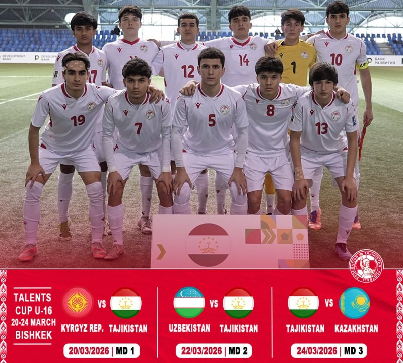 ДУШАНБЕ, 18.03.2026 /НИАТ «Ховар»/. В рамках подготовки к чемпионату CAFA-2026 юношеская сборная Таджикистана (U-16) по футболу под руководством Джафара Ахмедова примет участие в международном турнире «Talents Cup 2026», который пройдет в Кыргызстане.