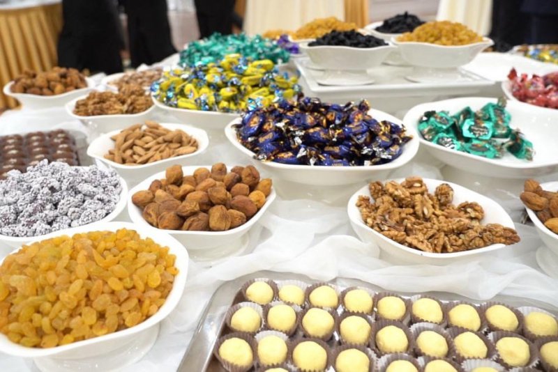 Гостям был представлен праздничный дастархан, украшенный символами Навруза — «7 Син» и «7 Шин», таджикские лепёшки, сухофрукты, а также продукция отечественных брендов, таких как кондитерские компании «Ширин» и «Амири», прохладительные и алкогольные напитки «Сиёма» и «Оби Зулол».