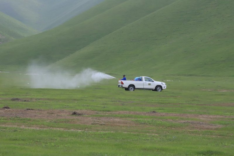 В частности, в работах по борьбе с саранчой используются 3 трактора с навесным оборудованием, 2 автомобиля Toyota, 1 грузовик УАЗ, 2 водовоза и 40 ручных опрыскивателей.